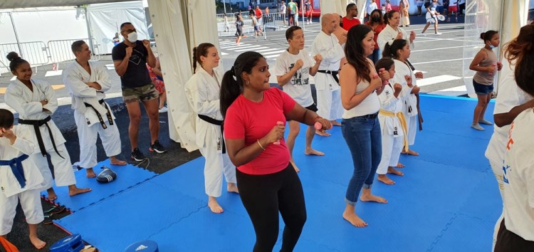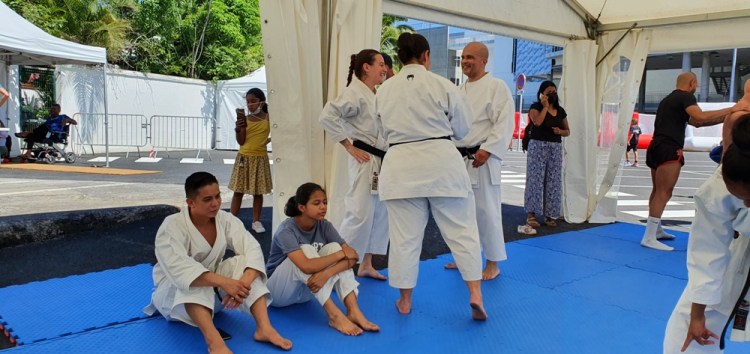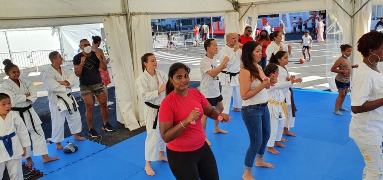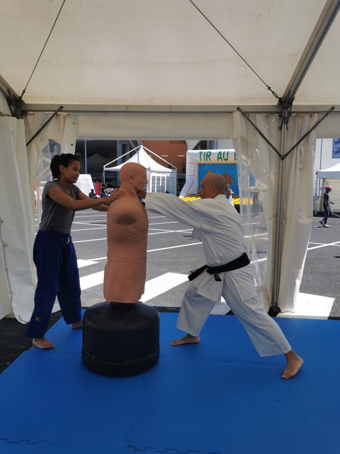 A l’occasion de l’ouverture du Décathlon St Denis, le club participait à une animation ce samedi. Le public a pu découvrir le club à travers des démonstrations et des initiations et certains se sont renseignés pour les cours. Nous leur avons donné RDV au club.