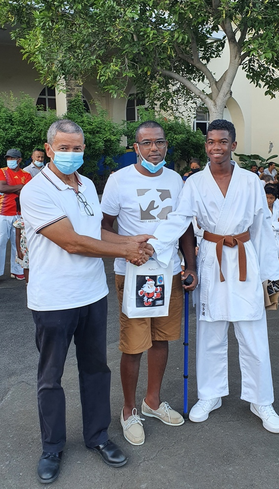 Puis ce fut la remise à chacun des licenciés des cadeaux emmenés par « le père noël » et qui n’avait pas oublié les belles Ceintures Noires pour nos 3 nouveaux gradés, Fitia, Lucas et Mathis.