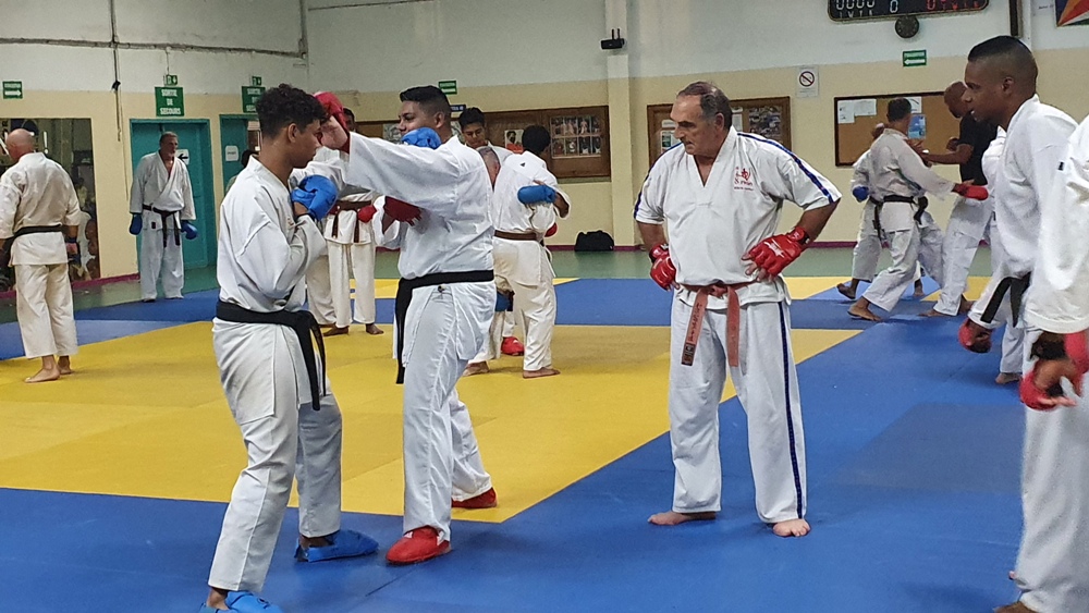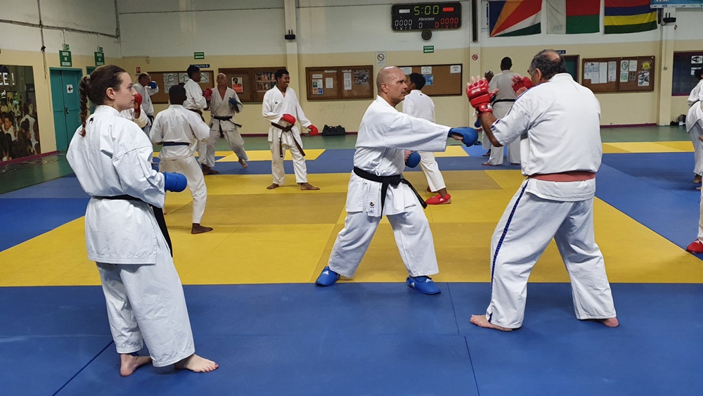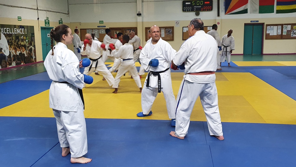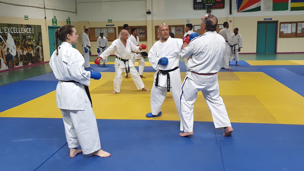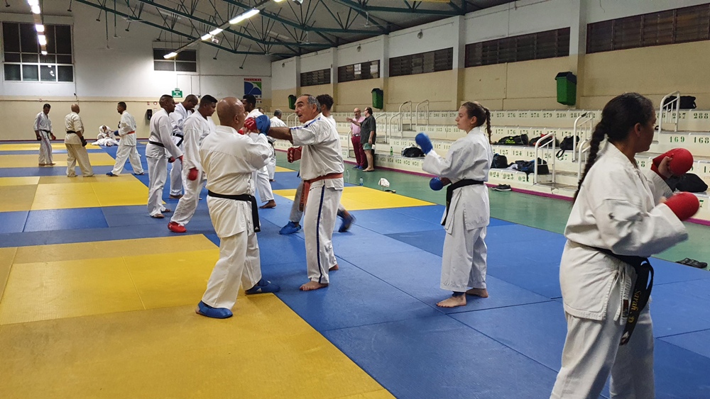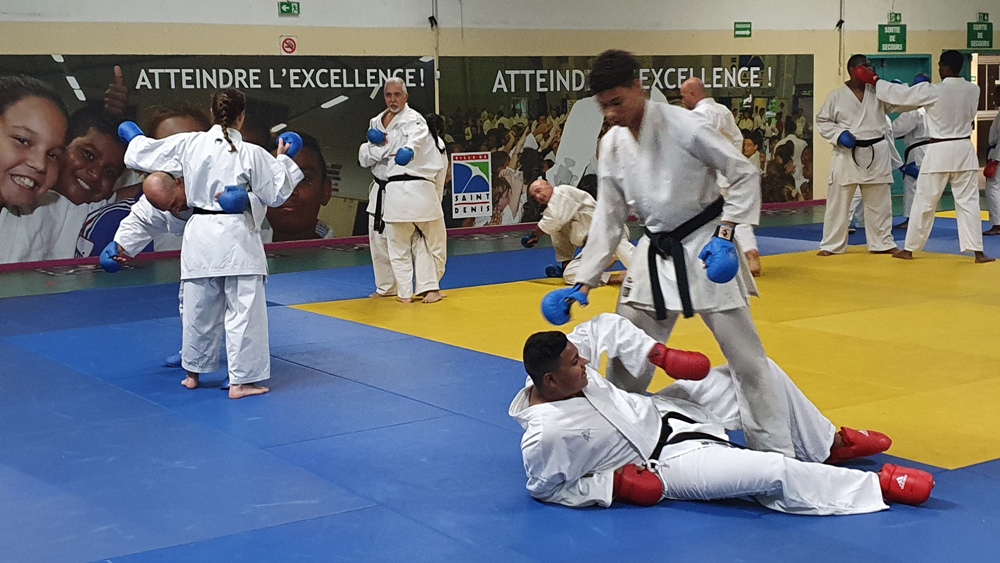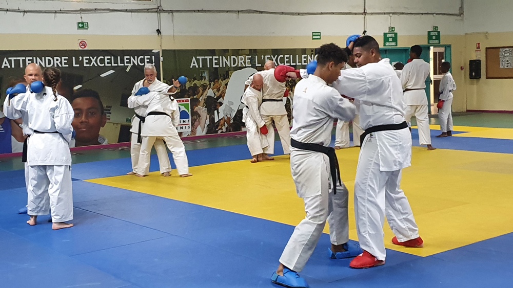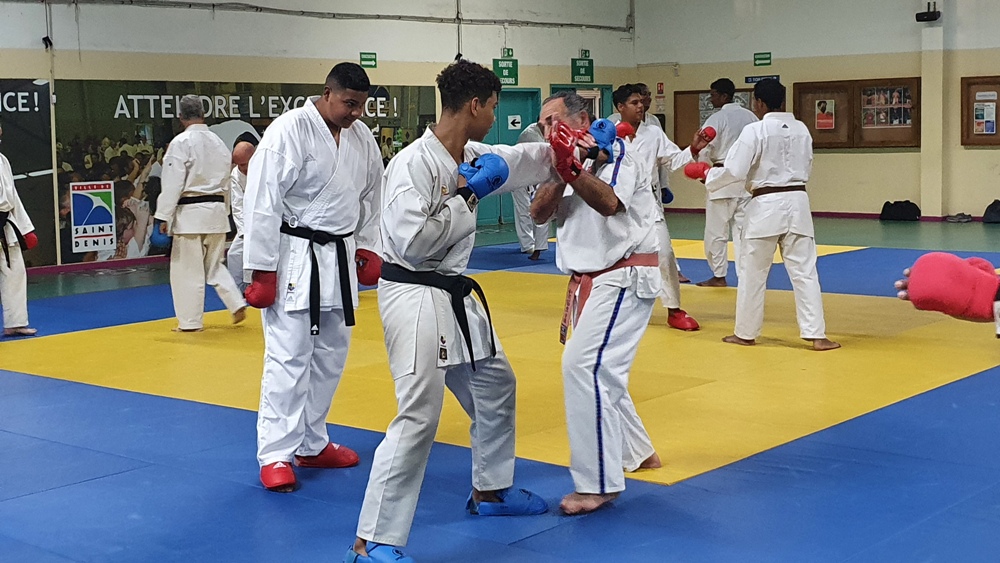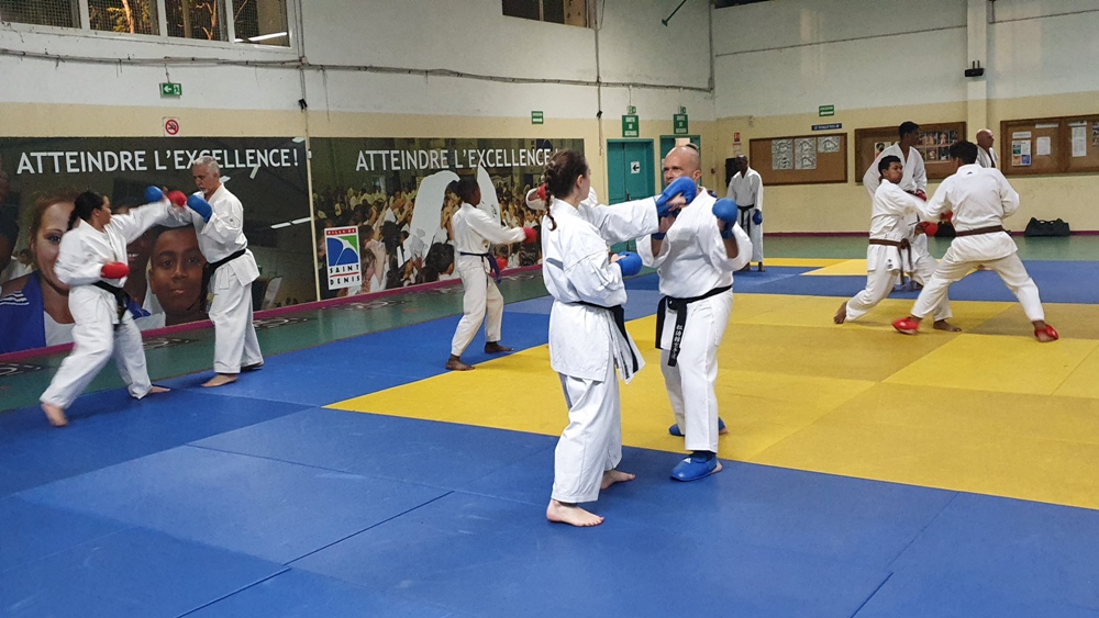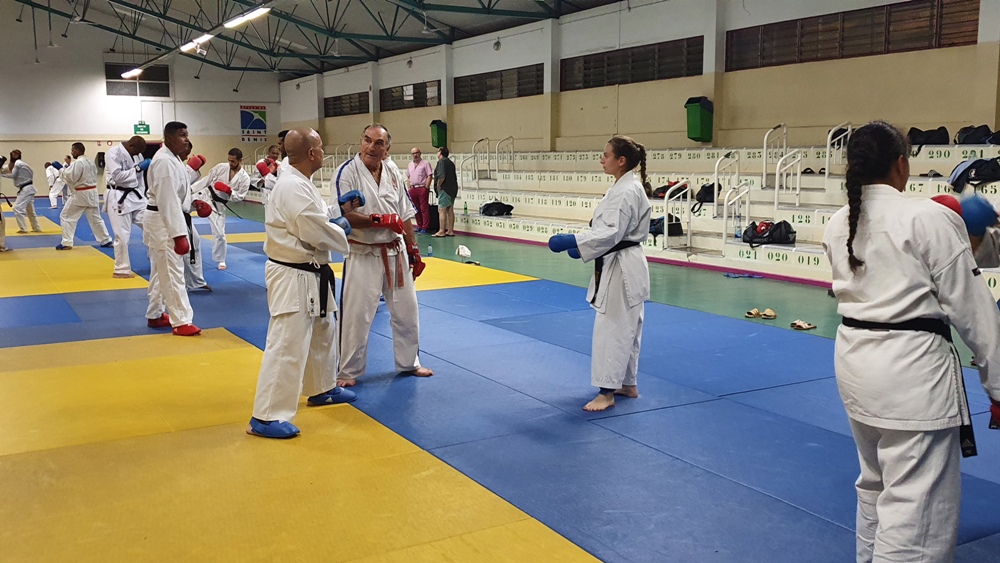 Dès le premier soir de son arrivée sur l’ile, Dominique Valéra dirigea un stage de Karaté ce mardi 31 mai au dojo régional de Champ Fleuri.