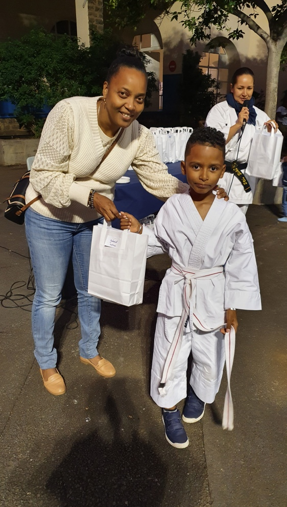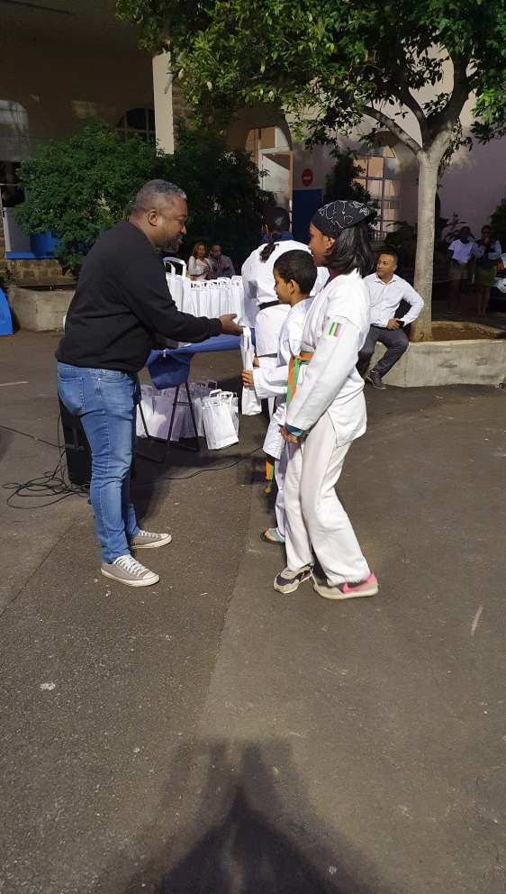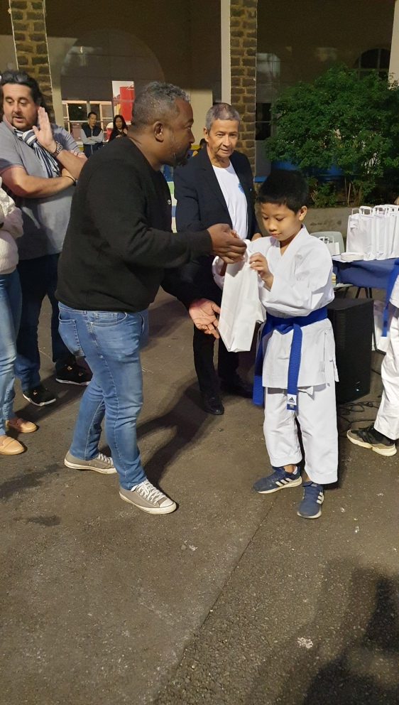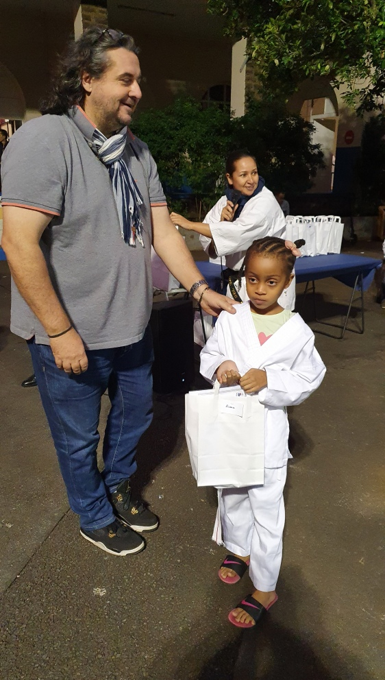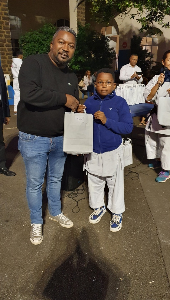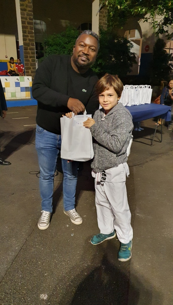 Après les démonstrations techniques et la présentation des champions, il y a eu la séance de remise des sachets-cadeaux à tous les licenciés qui ont récupéré les diplômes de leur nouveau grades et des surprises.