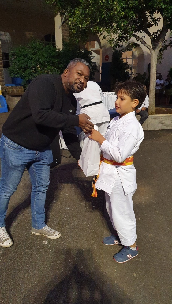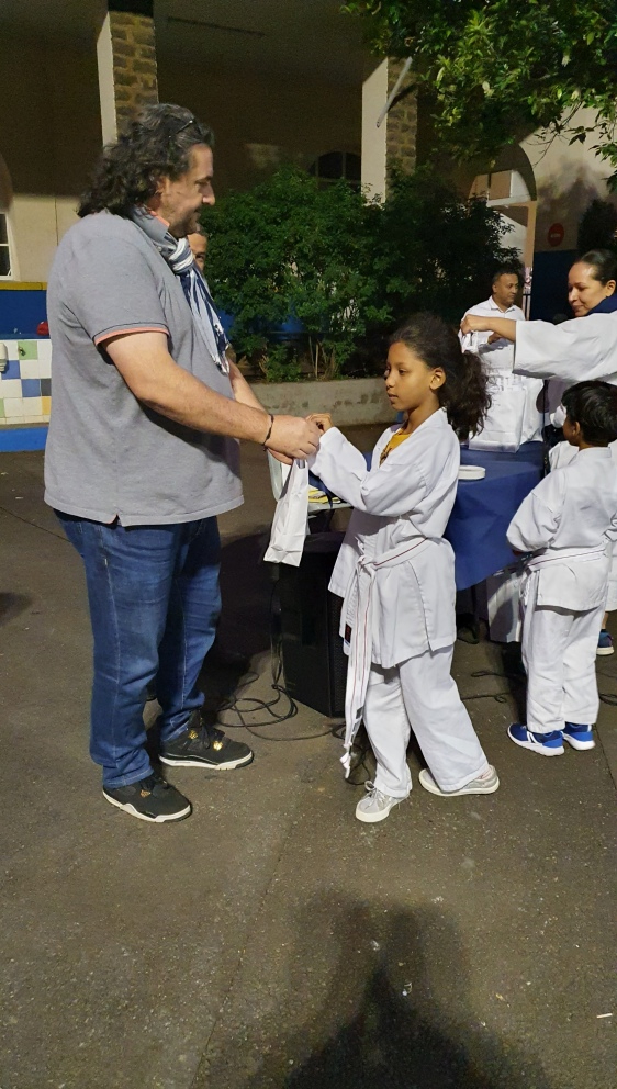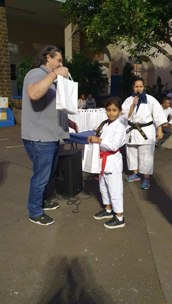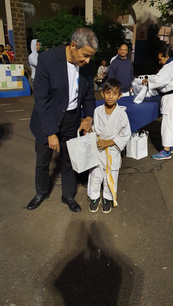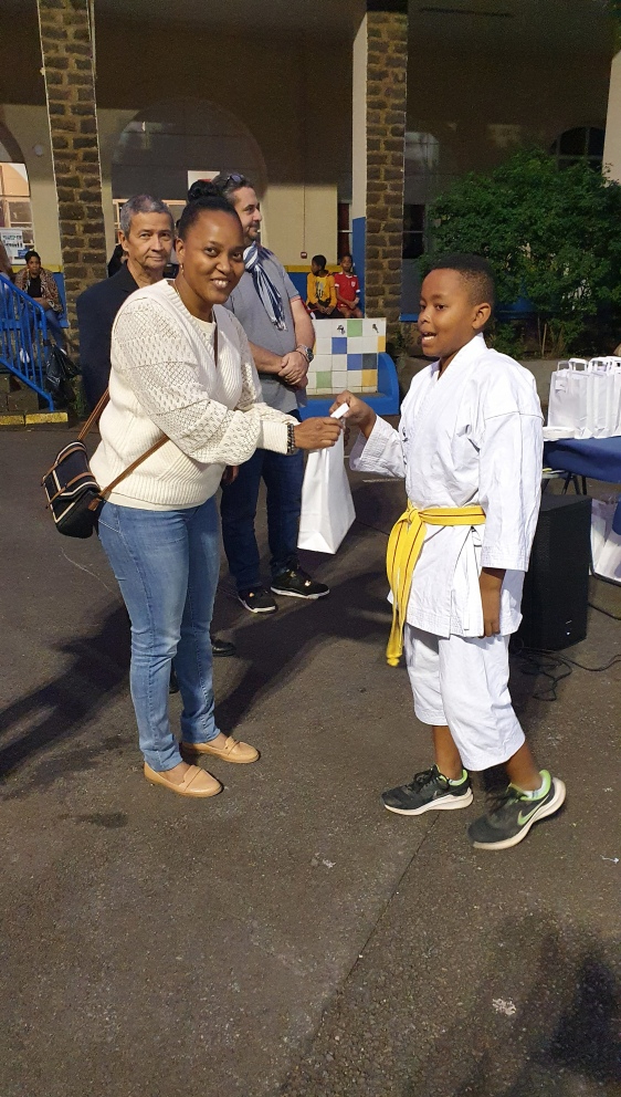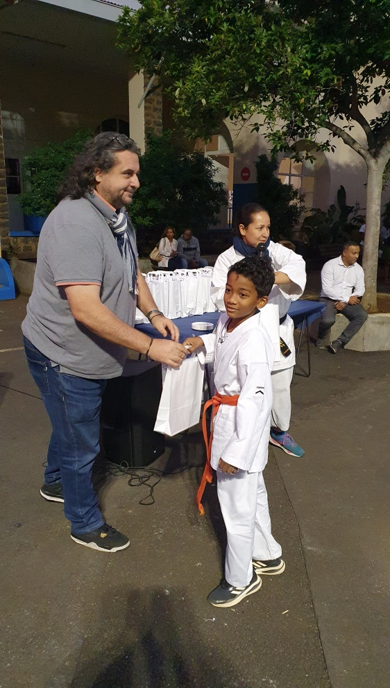 Après les démonstrations techniques et la présentation des champions, il y a eu la séance de remise des sachets-cadeaux à tous les licenciés qui ont récupéré les diplômes de leur nouveau grades et des surprises.