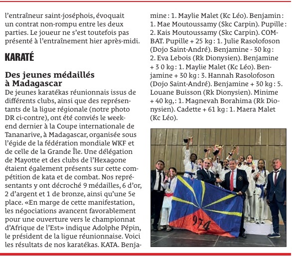 Suite à l’invitation envoyée par la Ligue à tous les clubs, des participants de plusieurs clubs étaient au RDV pour la Coupe Internationale de Tana ce week-end pour une première et sous l’égide de la Fédération Mondiale WKF et de la Fédération de Karaté Malgache FKM.